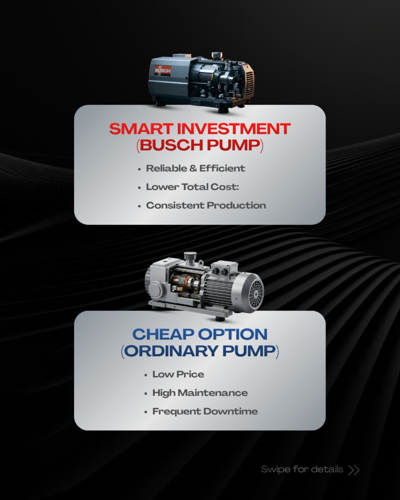 This detailed guide will break down the real differences between Busch vacuum pumps and standard market pumps, helping you make a smarter, profit-driven investment.